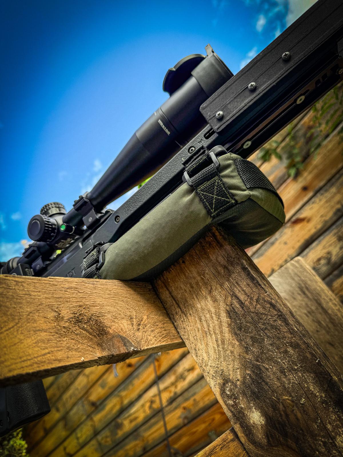 ZESTAW Płyta do poduszki strzeleckiej z mocowaniem arca / picatinny "X-frame" + mała poduszka strzelecka "Flat Bob" to gotowy komplet do zamocowania na broni z szyną arca lub picatinny.